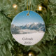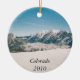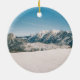 Estes enfeites de natal bonito caracterizam uma fotografia bonita de montanhas nevado na parte dianteira e na parte traseira. Na parte dianteira é um espaço feito sob encomenda para que você pnha uma mensagem ou você pode remover juntamente todo o texto. Aperfeiçoe para a pessoa que ama viajar!