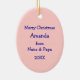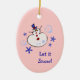 Aqui está um ornamento em forma de camiseta cor-de-rosa rosa que sua neta ou filha especial amará! A frente apresenta uma bela imagem de bonitinho de neve, com chapéu azul e botões vermelhos brilhantes, cercados por flocos de neve azuis. O texto personalizável diz atualmente "Deixe-o nevar!" A parte traseira é a mesma cor-de-rosa correspondente, com texto totalmente personalizável e fácil de mudar. Faça-o dizer o que quiser! Ela vai guardá-lo para sempre!
