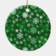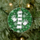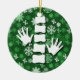 Características de design nossos mãos da quiroterapia e logotipos da espinha entre flocos de neve em um fundo verde.