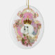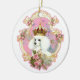 Este ornamento bonito de poodle branco é um presente adorável para amantes de poodle.  Combinei um quadro de ouro de ornamentado com rosas cor-de-rosa para o fundo. Se precisar de ajuda para personalizar o contato com Greer em greerdesign@aol.