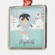 Datado & personalizou o grupo bonito dos enfeites de natal do patinagem no gelo do patinador do cabelo preto em um fundo enchido neve com árvores & um boneco de neve. Um presente do Natal da maravilha sure a ser estimado por muitos próximos anos.