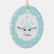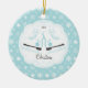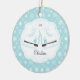 Datado & personalizou pares bonitos de enfeites de natal dos skates de gelo ajustados em um fundo azul do teste padrão do floco de neve. Um presente do Natal da maravilha sure a ser estimado por muitos próximos anos.