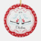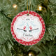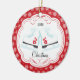 Datado & personalizou pares bonitos de enfeites de natal dos skates de gelo ajustados em um fundo vermelho & branco do teste padrão do floco de neve. Um presente do Natal da maravilha sure a ser estimado por muitos próximos anos.