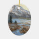 Este ornamento Holiday apresenta uma imagem de uma pintura de óleo de avião em plein feita na Wyoming Teton Range pelo artista Debra Mickelson. O texto sobre o azul correspondente diz atualmente "Feliz Natal 201X do Wyoming". Todo o texto é facilmente personalizado, então você pode fazê-lo dizer o que quiser.