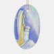 Um anjo e seu companheiro do lobo olham na aurora boreal.