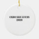A frente deste ornamento apresenta o arco no Land's End no pôr do sol. Na parte de trás está o texto preto que diz "Cabo San Lucas". Você pode personalizar com um encontro se você escolher.