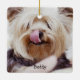 Enfeites de natal de cães (ornamento cerâmico quadrado duplo) com texto e foto personalizáveis - você pode adicionar a foto e o nome do seu cachorro. Mede 2,87 polegadas por 2,87 polegadas e pesos 1,4 onças. Você pode encontrar design semelhante com fotos personalizadas e texto em outros ornamentos também - floco de neve cerâmico, pewter ou ornamento de bola cerâmica.