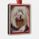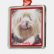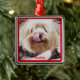 Enfeites de natal de cães (ornamento quadrado premium metálico) com texto e foto personalizáveis - você pode adicionar a foto e o nome do seu cachorro. Mede 2 polegadas por 2 polegadas e pesos 1,5 onças. Você pode encontrar design semelhante com fotos personalizadas e texto em outros ornamentos também - floco de neve cerâmico, pewter ou ornamento de bola cerâmica.