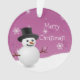Adicione um toque caprichoso à sua árvore de Natal com um Ornamento de Cena de Inverno Rosa Snowman. Design de ornamento apresenta um boneco de neve feliz em uma cena de ventania de neve contra um fundo cor-de-rosa adornado com flocos de neve de cor correspondente. Itens adicionais de presentes e feriados disponíveis com este design também.