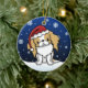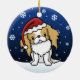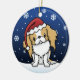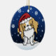 Enfeites de natal vermelhos e brancos bonitos de Chin do japonês, tirados em desenhos animados do kawaii! Esta raça adorável do cão está vestindo um chapéu vermelho do papai noel, e os flocos de neve estão caindo toda em torno dele. Absolutamente querido, perfeito para a árvore do Xmas do amante do cão!