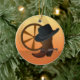 Uma ilustração gráfica de uma roda de vagão ocidental, chapéu de cowboy e botas de cowboy num Enfeites de natal personalizado. O ornamento tem modelos de texto para sua personalização. Arte original: Direitos autorais Charmaine Paulson