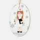 Uma ilustração gráfica de uma enfermeira fofa num Enfeites de natal. O ornamento tem modelos de texto no verso para o seu texto.