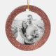 Um quadro moderno de brilho brilhante rosa dourado falso brilha neste Enfeites de natal personalizado com sua foto pessoal de um lado e texto modelo de fácil personalização no verso. Comemorar o ano com este ornamento personalizado ou dar à família como uma única vitória de férias.