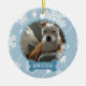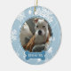 Azul Claro com Flocos de Neve Brancos Ornament Personalizado de Pet de Foto - faz um presente de excelente para o amante do cão ou do gato. Personalize com a foto e a informação do seu animal de estimação. Se você precisar mover o texto ou alterar o tamanho, a fonte ou a cor, clique em Personalizar.