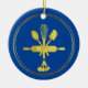 Este é um adorno divertido para dar ao seu Baker favorito para pendurar na árvore. Ou ao membro da sua família que é o padeiro a ser representado na árvore de Natal da família. O design apresenta uma imagem ouro de utensílios cozinheiros na frente. O texto no verso deste ornamento pode ser mudado para mais personalização com um NOME e ANO ou removido para se adequar ao seu destinatário se você não quiser isso para o Dia Nacional da Padaria, que é anual na quarta sexta-feira de setembro. Desenhado por Sheila Cicchi, Brownielocks.com. Todos os Direitos Reservados. NOTA: devido ao estilo design, isso só pode ser para ornamentos CIRCULARES.
