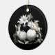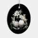 Elegante design de Natal de marfim bege preto com Enfeites de natal de marfim preto e marfim, decoração, flores de marfim, galhos de pínus e arco de cebola preta, com sua mensagem de texto personalizada no verso do ornamento.