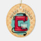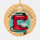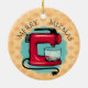 Enfeites de natal bonito para padeiros, com um misturador retrô e fundo decorativo de damasco, perfeito para um tema de assar ou doces, árvore temática culinária ou para dar seu padeiro ou cozinheiro favorito.