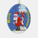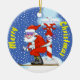 Um Papai noel de esqui em óculos de sol no Polo Norte constitui este Enfeites de natal divertido. Personalizável para que você possa adicionar seu próprio texto e alterar a cor de fundo. Traga as férias com esta design festiva.