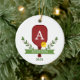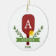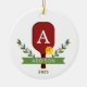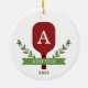 Enfeites de natal de Pickleball Personalizado. Comemore seu ano de piquenique brincando com um adorável ornamento festivo. Personalize com um dentro inicial do remo, assim como adicione seu nome e ano. Mostrada em uma paleta vermelha e verde clássica com uma bola de picleball amarela padrão, mas TODAS AS CORES SÃO EDITÁVEIS POR VOCÊ! Você pode escolher novas cores para o remo, a bola de picles, o holly + bagas, a faixa e o texto. Certifique-se de fazer as mesmas mudanças no outro lado do ornamento. © Kimbellish, LLC