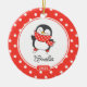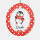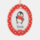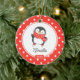 Conjunto de Enfeites de natal de pinguim de patinação no gelo, atualizado e personalizado, em fundo branco e enquadrado com bolinhas vermelhas e brancas. . Um presente de Natal Maravilhoso que certamente será precioso por muitos anos.