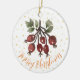 Enfeites de natal Hip Rosa de Aquarela com Pintura Manual Deliciosa. Escolha entre vidro redondo, cerâmica redonda ou ornamento de metal redondo. Todos os Designs de Criação de Cucumelon são protegidos por direitos autorais.