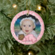 O adorno de manutenção personalizável de 1rua de Natal do bebê com uma bebê dormindo em um design de floco de neve cor-de-rosa e macio. Você pode personalizar facilmente este ornamento com a foto do bebê e adicionar seu próprio texto ao fundo. É excelente como presente de Natal de 1rua e será recordação para os próximos anos.