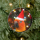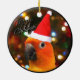 Ornamento bonito de Sun Conure! O papagaio verde veste um chapéu vermelho brilhante do papai noel na frente de um fundo colorido do inverno. Divertimento para a árvore do Xmas do amante do pássaro esta época natalícia.