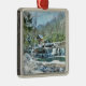 Enfeites de natal que caracterizam um dia nevado-gelado no moinho da angra do Glade, parque estadual Babcock situado em West Virginia.