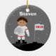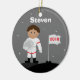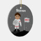 Estes enfeites de natal customizáveis do astronauta podem ser personalizados com nome e o ano da sua criança. Fazem um grande presente do stuffer ou do Natal da meia. Caracteriza um menino em um uniforme do astronauta. Design de BabyStar de alguns elementos
