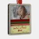 Os primeiros enfeites de natal do bebê customizáveis com sua própria foto do bebê em amarelo, em vermelho e em verde com flocos de neve e teste padrão festivos das listras. Um presente memorável do Natal para alguma mamã nova.