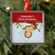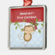 Os primeiros enfeites de natal do bebê caracterizam um macaco adorável do papai noel que veste um chapéu do papai noel que balança em um grupo da selva azul & branca fundo pontilhado em uma polca! Disponível em uma forma do coração em nossa loja! Personalize com sua informação do bebê e data e você são todos ajustam-se para ir! Presente datado maravilhoso da lembrança para Natal do seu bebê o ø.