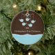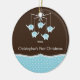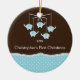 Os primeiros enfeites de natal do bebê caracterizam o móbil azul o mais doce do elefante ajustado em um fundo marrom & azul.  A parte traseira do ornamento está pronta para que você adicione a informação do nascimento do seu bebê.  Personalize com sua informação do bebê e data e você são todos ajustam-se para ir!  Presente datado maravilhoso da lembrança para Natal do seu bebê o ø.  estúdio do ©Cocoa
