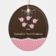 Os primeiros enfeites de natal do bebê caracterizam o móbil azul o mais doce do elefante ajustado em um fundo cor-de-rosa marrom & fúcsia. A parte traseira do ornamento está pronta para que você adicione a informação do nascimento do seu bebê. Personalize com sua informação do bebê e data e você são todos ajustam-se para ir! Presente datado maravilhoso da lembrança para Natal do seu bebê o ø. estúdio do ©Cocoa