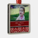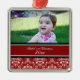 Enfeites de natal do bebê os øs customizáveis com suas próprias fotos do bebê na cor damasco floral clássica vermelha e branca elegante. Um presente memorável para alguma mamã nova esta época natalícia.