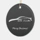 Enfeites de natal brancos da silhueta do cupé de Infiniti G35. Ornamento do carro. Presentes para ele. Fundo cinzento.