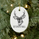 Os enfeites de natal de uma ilustração preto e branco bonita de um cervo com o caçador da palavra imprimiram embaixo. Presente perfeito para caçadores dos cervos e amantes de natureza.