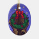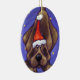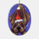 Os enfeites de natal bonitos do cão de cão caracterizam nossos trabalhos de arte do divertimento pintados digital por Traci Van Wagoner de um cão do marrom do divertimento do decked dianteiro para fora em um chapéu do papai noel e na parte traseira que veste uma grinalda do Natal em seu atrás. Nossos divertimento e caráter cómico do doggy vestidos toda acima para os feriados fazem um presente original para aqueles amantes do Natal, amantes do filhote de cachorro, amantes do cão, e amantes dos animais em sua lista de presente esta época natalícia. Traga um sorriso a suas caras do amigo e da família e tenha uma época natalícia alegre!