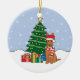 Diga o "Feliz Natal" com este cão do faraó, ornamento da lembrança da arte do animal de estimação. Caracterizando um lunático, ilustração da raça do cão, é um grande presente para o fã do cão do faraó. Adicione um a sua lista de presente. Personalize-a com uma mensagem na parte traseira!