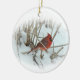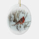 O vermelho vivo do Cardeal do Leste é inconfundível. A fêmea é uma cor de oliveira mais acastanhada e sedada com toques vermelhos. Geralmente, viagem em pares.