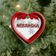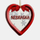 Um design gráfico de flocos de neve em um quadro vermelho estilo 3D em um Enfeites de natal de forma cardíaca Nebraska. O ornamento tem modelos de texto para sua personalização. ©2012charmanepaulson