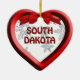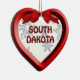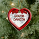 Um design gráfico de flocos de neve em um quadro vermelho estilo 3D em um Enfeites de natal de forma cardíaca Dakota do Sul. O ornamento tem modelos de texto para sua personalização. ©2012charmanepaulson