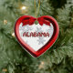 Um design gráfico de flocos de neve em um quadro vermelho estilo 3D em um Enfeites de natal de Alabama em forma de coração. O ornamento tem modelos de texto para sua personalização. ©2012