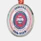 Mostre seu orgulho de Estado nesta temporada de festas com este Enfeites de natal único dedicado a Indiana, o 19º estado. Tem cores patrióticas vermelhas, brancas e azuis com design de tipografia circular em fundo branco. O texto inclui fatos sobre o estado, como nome, capital, abreviação de estado, região, fuso horário, coordenadas geográficas, ano de sua soberania e nome do seu residente. É um presente excelente para aqueles que desejam celebrar seu estado ou para aqueles que estão se sentindo nostálgicos sobre seu estado natal.