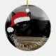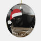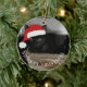 O gatinho preto bonito com o ornamento do chapéu do papai noel, de que lê: Feliz Natal. Você é bem-vindo mudar as palavras.