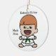 Grandes enfeites de natal das artes marciais para o lutador que você sabe. A parte dianteira caracteriza uns desenhos animados bonitos de um menino do karaté em um cinto verde. À esquerda do desenho é um espaço feito sob encomenda por um nome e um ano. A parte traseira tem um espaço para uma fotografia feita sob encomenda de sua escolha.