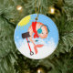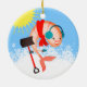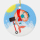O camarão bonito com capas protectoras para as orelhas, lenço, e mitenes que levam uma pá, apronta-se para cancelar alguma neve. Ornamento super do feriado do Natal do divertimento para todos os tipos dos foodies: cozinheiros chefe, fornecedor ou restauração, aulas de culinária, vendedores do marisco e restaurantes pessoais ou privados.