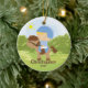 Personalize os enfeites de natal louros pequenos bonitos datado do menino do cavaleiro de horseback ajustados em um fundo da grama & da árvore. O ornamento bonito do cavalo caracteriza o rapaz pequeno o mais doce que monta seu pônei. Um presente do Natal da maravilha sure a ser estimado por muitos próximos anos.