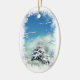 Este ornamento do feriado é um país das maravilhas do inverno! A tempestade da neve é excedente e a paz estabeleceu-se delicadamente sobre esta cena bonita do inverno. A árvore spruce tem uma cobertura da neve branca, o céu é um azul profundo com nuvens inchado e os ramos cobertos de neve moldam a imagem. Esta não será suspensão bonita em sua árvore de Natal?