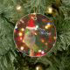 Ornamento bonito do Parakeet do quacre! O papagaio verde veste um chapéu vermelho brilhante do papai noel na frente de um fundo colorido do inverno. Divertimento para a árvore do Xmas do amante do pássaro esta época natalícia.