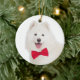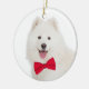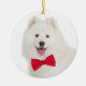 Estes enfeites de natal bonitos caracterizam um Samoyed com um bowtie vermelho festivo!